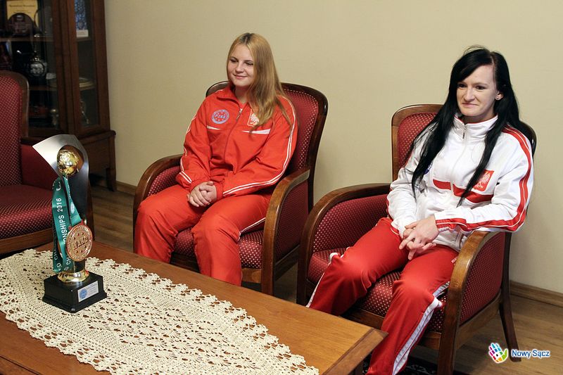 Prezydent Ryszard Nowak spotkał się w sądeckim ratuszu z Mistrzynią Świata w kickboxingu Jolantą Cichoń. Walczącej w kategorii wagowej +70 kg w formule full contact zawodniczce towarzyszyli trenerzy klubu UKS Evan: Ewa i Krzysztof Bulanda.
