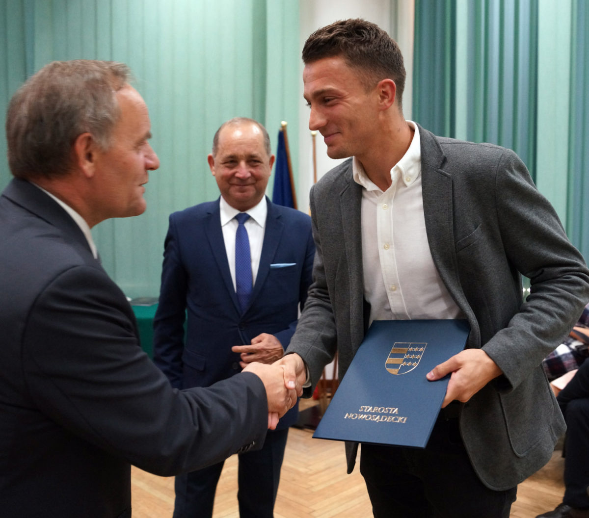 Podczas dorocznego spotkania władz Powiatu Nowosądeckiego ze sportowcami, trenerami i osobami promującymi zdrowy styl życia, starosta nowosądecki Marek Pławiak wręczył nagrody finansowe za wybitne osiągnięcia w dziedzinie kultury fizycznej i sportu. Sukcesów gratulowali im także wicestarosta Antoni Koszyk i radny Stanisław Sułkowski – przewodniczący Komisji Turystyki i Sportu Rady Powiatu Nowosądeckiego. Towarzyszyli im radni Stanisław Dąbrowski i Marian Dobosz.