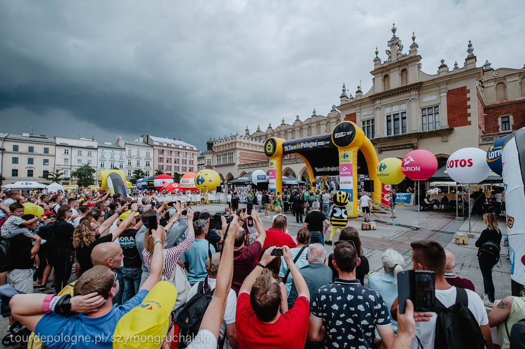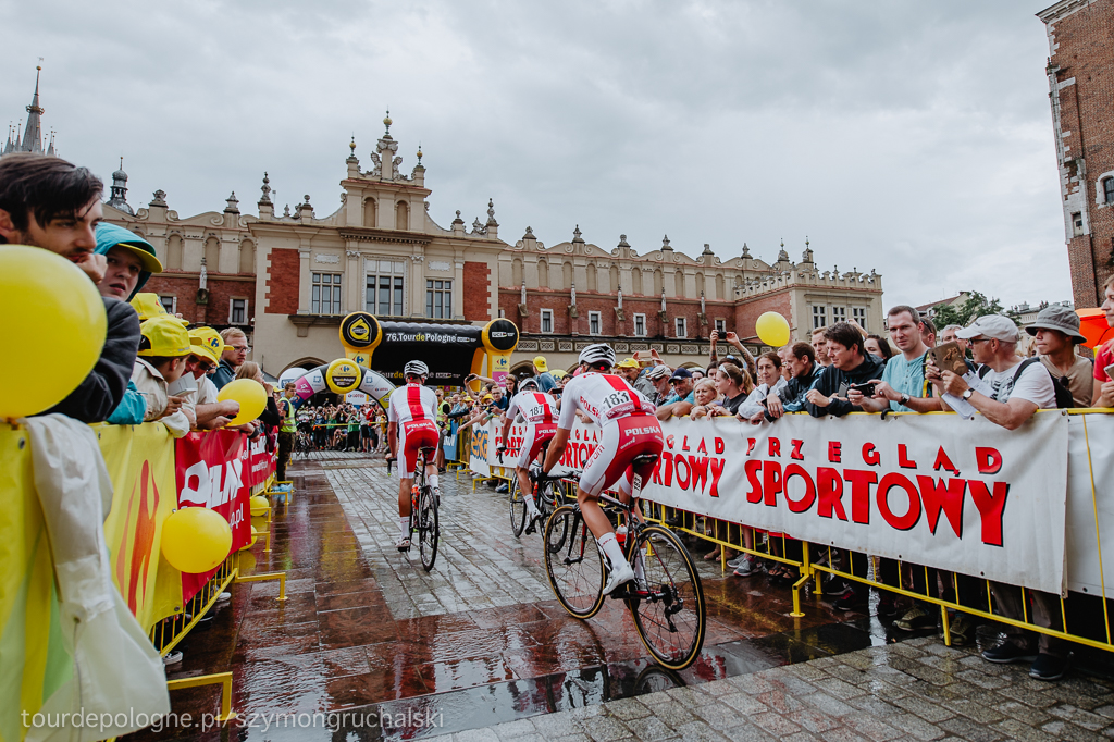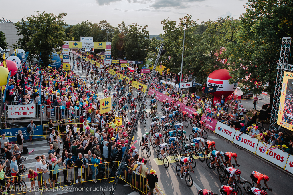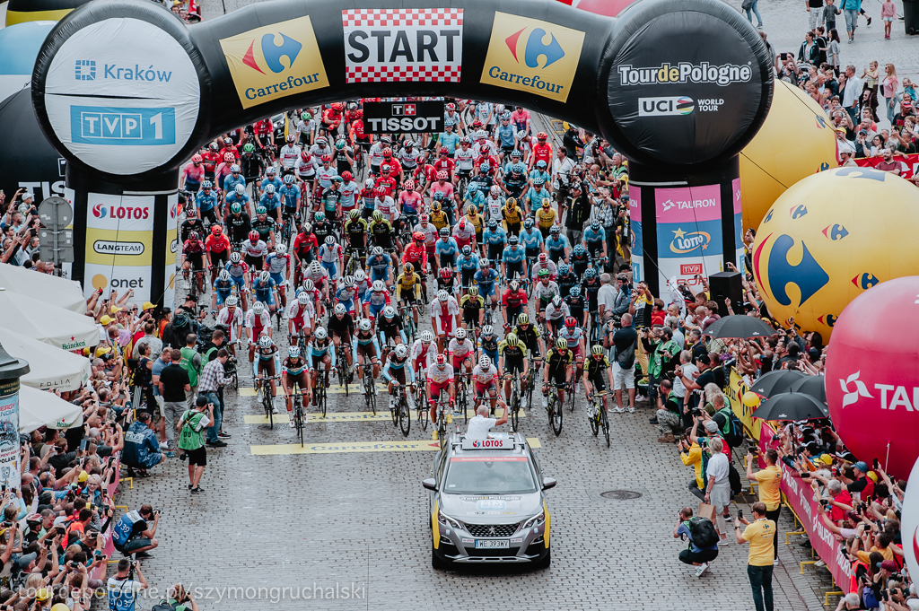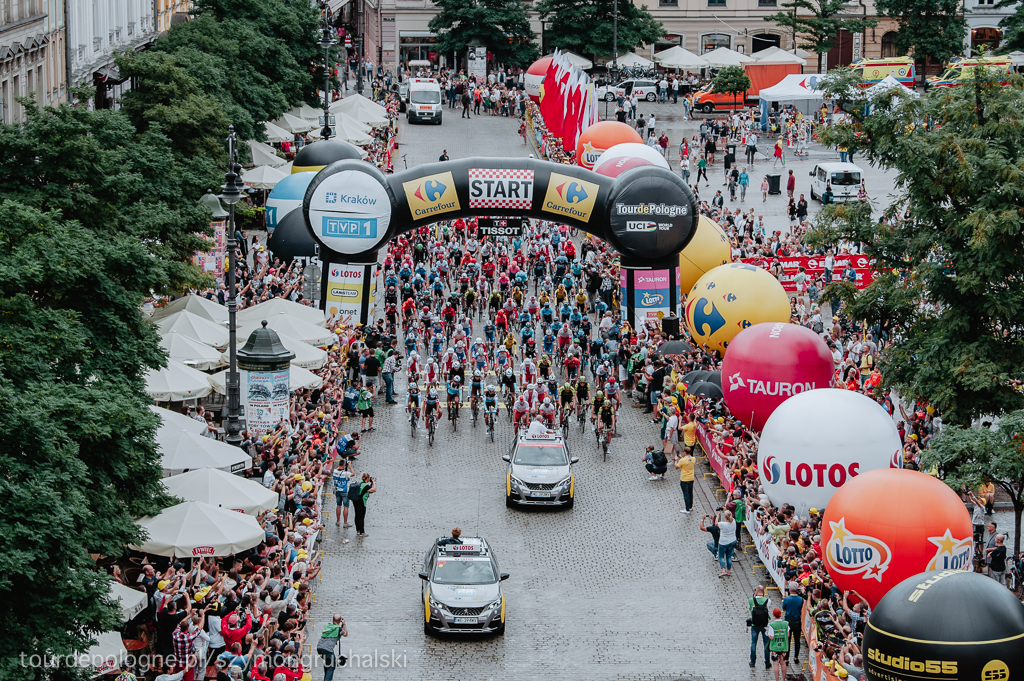 76 Tour de Pologne UCI World Tour rozpoczął się na Rynku Głównym w Krakowie. Po uroczystym otwarciu wyścigu i starcie honorowym kolarze wyruszyli na trasę pierwszego etapu liczącego 132 kilometry. Niedługo po starcie od peletonu oderwało się trzech kolarzy – Jakub Kaczmarek i Adrian Kurek z Reprezentacji Polski oraz Charles Planet (Team Novo Nordisk). Pierwszą Lotną Premię LOTTO wygrał Adrian Kurek, ale chwilę później miał groźny upadek, co przekreśliło jego szanse na dalszą walkę o czołowe pozycje.
