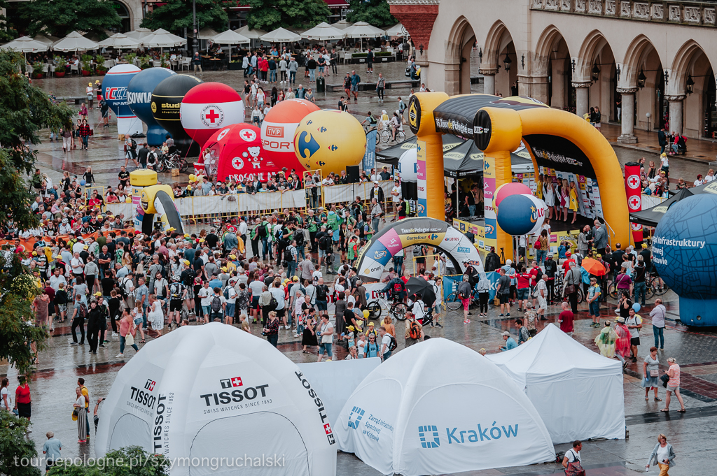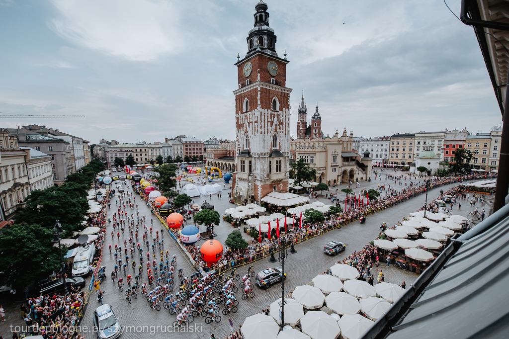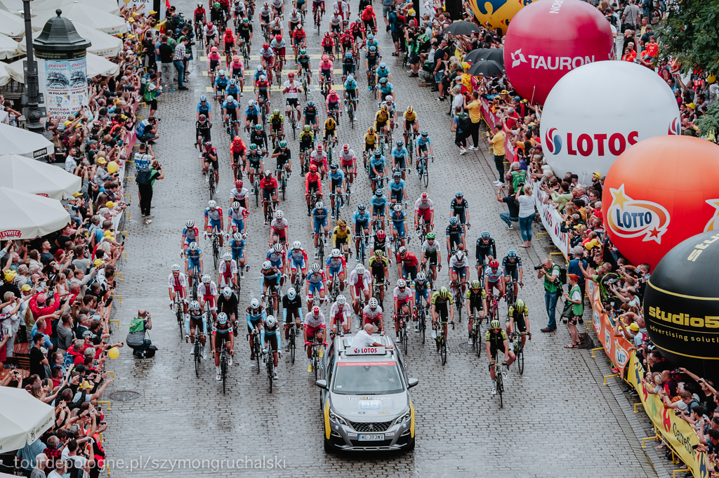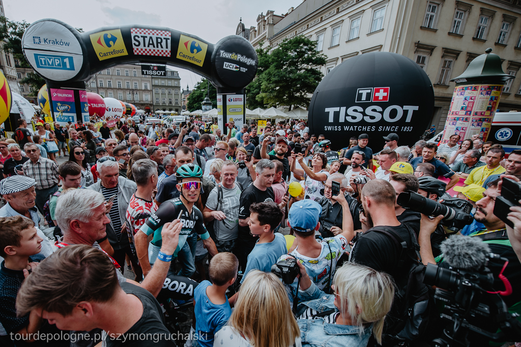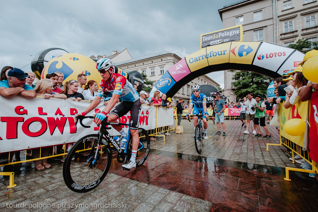 76 Tour de Pologne UCI World Tour rozpoczął się na Rynku Głównym w Krakowie. Po uroczystym otwarciu wyścigu i starcie honorowym kolarze wyruszyli na trasę pierwszego etapu liczącego 132 kilometry. Niedługo po starcie od peletonu oderwało się trzech kolarzy – Jakub Kaczmarek i Adrian Kurek z Reprezentacji Polski oraz Charles Planet (Team Novo Nordisk). Pierwszą Lotną Premię LOTTO wygrał Adrian Kurek, ale chwilę później miał groźny upadek, co przekreśliło jego szanse na dalszą walkę o czołowe pozycje.