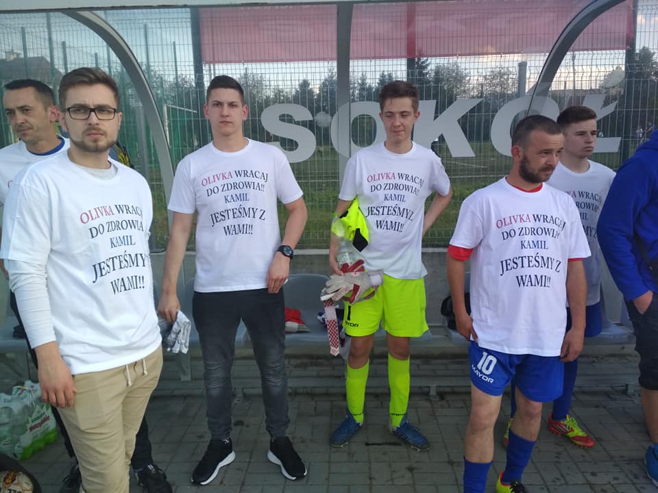 Piękny gest piłkarzy Sokoła. „Olivka wracaj do zdrowia. Kamil jesteśmy z Wami!”