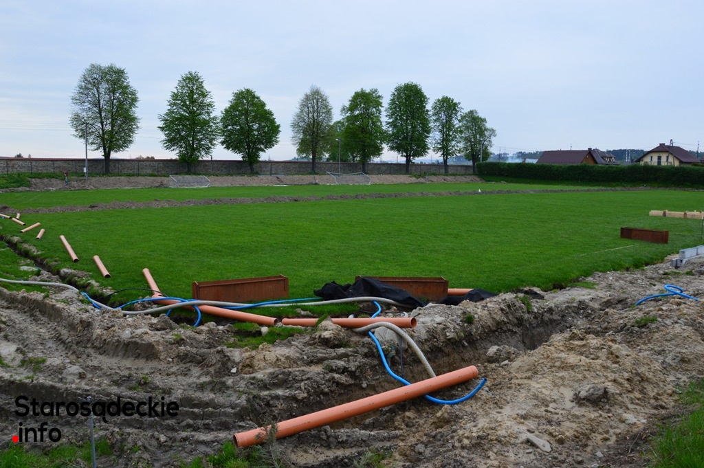 Wykonano już system odwodnienia i nawodnienia. Wkrótce pojawią się nowe kryte trybuny (szare krzesełka) , kabiny dla zawodników rezerwowych, monitoring, ogrodzenie, mur oporowy oraz podświetlana tablica wyników. W zakresie prac są także roboty przy instalacji elektrycznej, budowie dwóch piłkochwytów, wykonanie elementów małej architektury i remont studni wraz z budową zbiornika retencyjnego i instalacji nawadniania.
