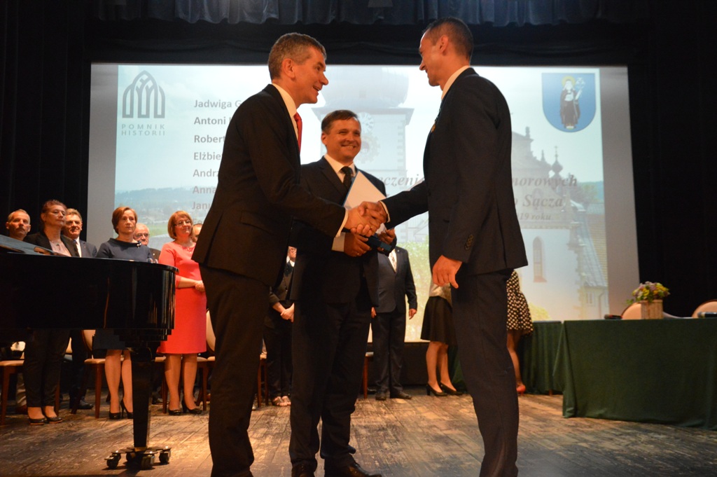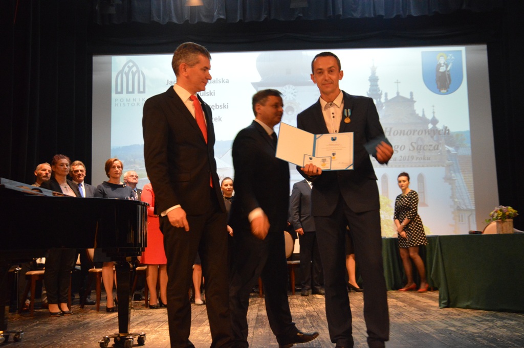 Szymon Stolarski, prezes Miejskiego Klubu Sportowego „Sokół” w Starym Sączu odebrał z rąk burmistrza Jacka Lelka Honorową Odznakę Starego Sącza. Wyróżnienie przyznała Rada Miejska Starego Sącza na wniosek burmistrza.