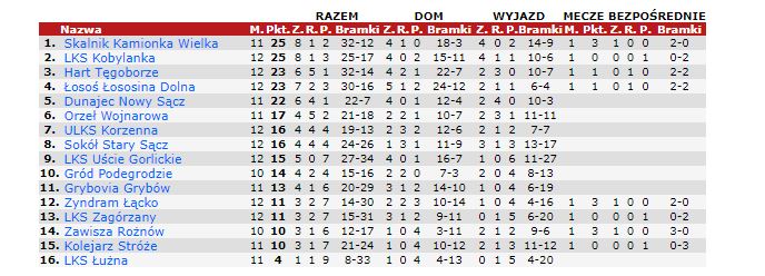 28 goli padło w 6 meczach 12 kolejki sądeckiej okręgówki. Do pogromu doszło w Łącku, gdzie Sokół Stary Sącz ostrzelał Zyndrama 1:6 tym samym wskakując na 8 miejsce w tabeli. Wicelider tabeli LKS Kobylanka zremisowała na wyjeździe z Hart Tęgoborze a Dunajec Nowy Sącz rozgromił Łużną 0:4.