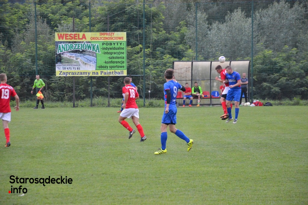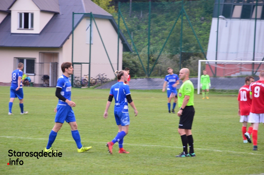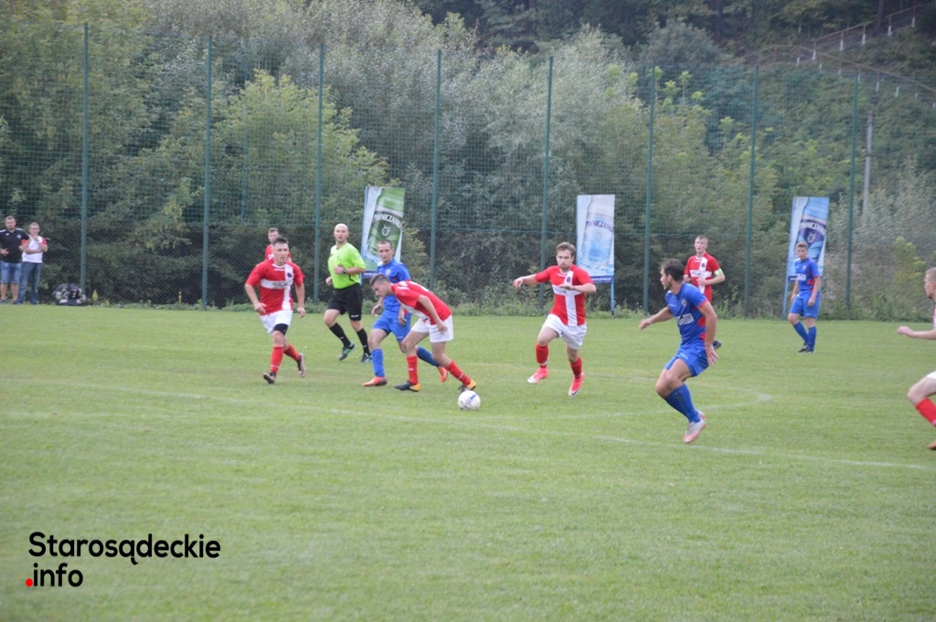 Początek meczu był bardzo wyrównany. Obie drużyny grały odważnie. Chwilę później gospodarze mogli wyjść na prowadzenie, ale piłka po ich strzale przeleciała koło słupka. W drugiej części gry sytuacja się odwróciła. W 70. minucie spotkania Sokół miał okazję sam na sam. Zabrakło niewiele by przesądzić o wygranej starosądeczan. Dodatkowo w 90 minucie, gospodarze grali w osłabieniu-sędzia podyktował czerwoną kartkę dla piłkarza Ogniwa (Robert Oleksy). Wynik do końca już nie uległ zmianie, choć okazji nie brakowało z obu stron.