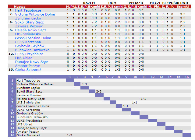 W pierwszej kolejce sezonu MKS Sokół Stary Sącz remisuje na własnym boisku z KS Zawisza Rożnów 2:2.