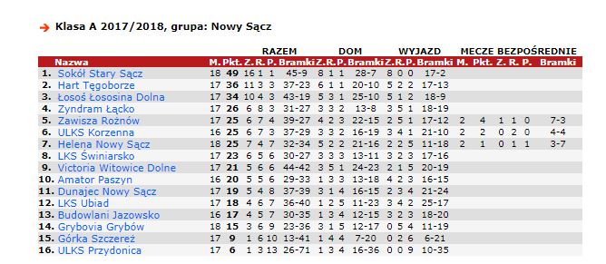 Po 1 przegranej z Korzenną i 1 wygranej z Grybowem w rundzie wiosennej piłkarze Sokoła nadal pozostają liderem A klasy.