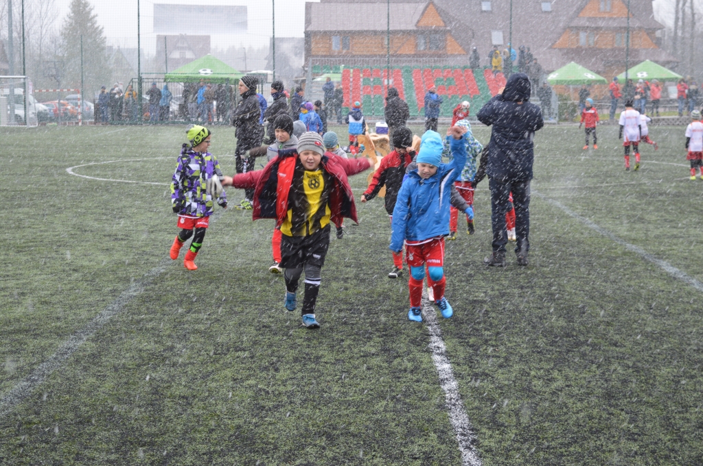 Mecze grupowe rozgrywaliśmy w piątek – 4 i sobotę do obiadu – 3, z rywalami właśnie w takiej kolejności, jak wyżej. Nasze mecze piątkowe, zwłaszcza pierwszy z „Pasami” i trzeci z Parasolem chcemy jak najszybciej zapomnieć. W obu przypadkach rywale grali wcale nie porywająco, a my…. byliśmy jeszcze w drodze na turniej, tak gdzieś między Łopuszną a Murzasichlem. 0-5 z Cracovią i remis 1-1 z Parasolem – komentarz zbędny. Z Ajaksem przeważaliśmy, graliśmy cały czas na połowie rywala, ale piłka zamiast przynajmniej z pięć razy trafić do bramki rywala, wpadła do naszej siatki. Prawdziwe Sokoliki zobaczyliśmy dopiero w meczu z Motorem Lublin. W końcu dojechaliśmy na te zawody. Zagraliśmy ambitnie, agresywnie i pomysłowo, tak jak uczymy się grać cały czas. A rywal był naprawdę mocny i wymagający. 0-0 utrzymywało się do ok. 15 minuty. Wtedy swoje wtrącił sędzia. Dopatrzył się faulu w polu karnym (nie bardzo potem potrafił wytłumaczyć o co mu chodziło). Stracony gol w tak kuriozalnych okolicznościach ewidentnie załamał naszych chłopców. Skończyło się 0-5 i dużym niesmakiem.
