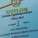 Awans do zawodów ogólnopolskich uzyskała drużyna – Liceum Ogólnokształcące w Starym Sączu.