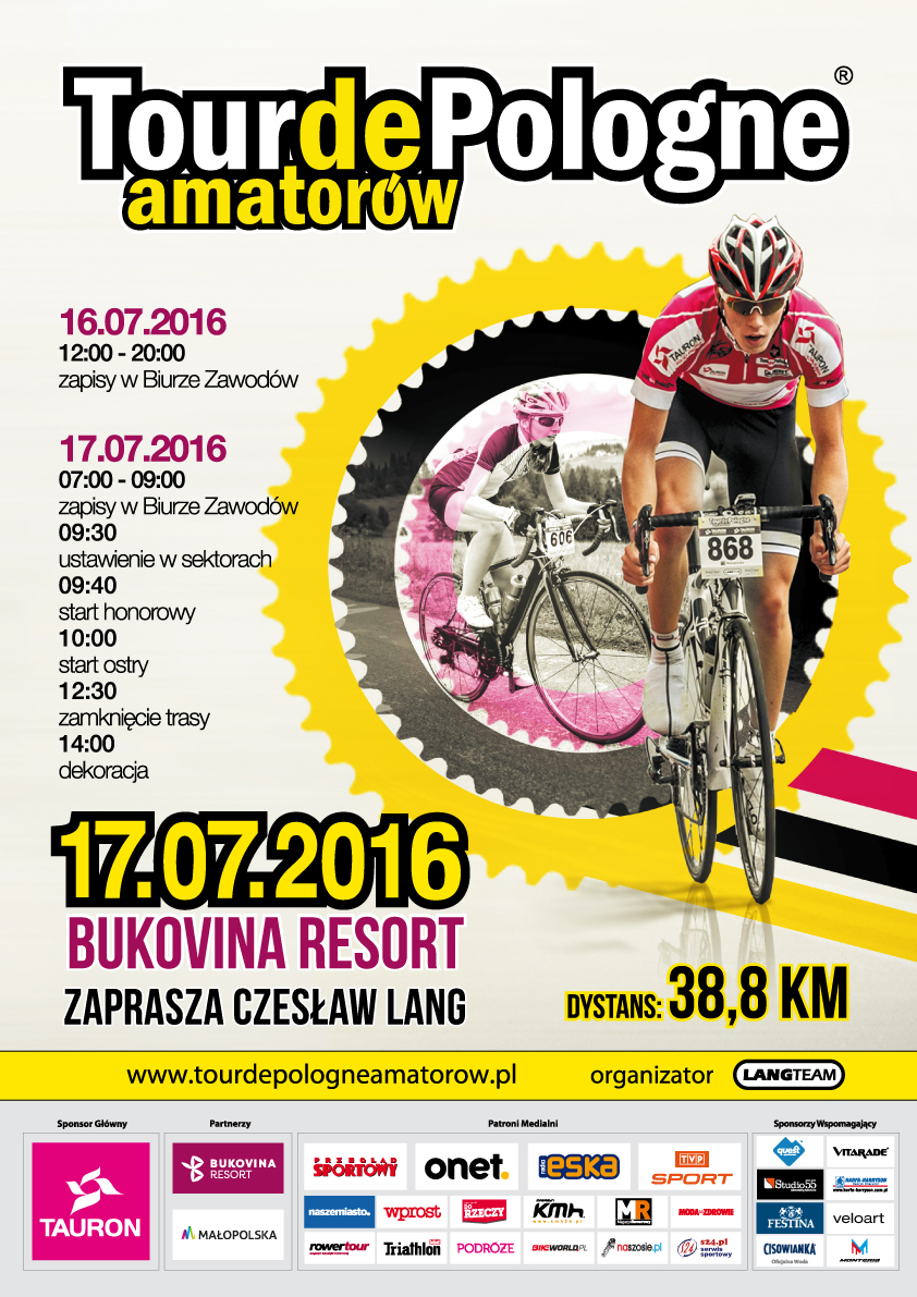 Tour de Pologne to nie tylko sportowe emocje na najwyższym poziomie, to także imprezy towarzyszące przeznaczone dla wszystkich miłośników kolarstwa i jazdy na rowerze. Już po raz siódmy zostanie zorganizowany Tour de Pologne Amatorów – jeden z największych wyścigów szosowych w Polsce. W ubiegłym roku na starcie pojawiło się ponad 1700 uczestników. Tegoroczna edycja odbędzie się 17 lipca, a kolarze wystartują spod kompleksu BUKOVINA Resort i przejadą 38-kilometrową rundę królewskiego etapu Tour de Pologne. Możliwość zmierzenia się z kultowymi podjazdami (Ząb i Ściana BUKOVINA), fantastyczna atmosfera kolarskiego święta, spotkania z kolarskimi gwiazdami, a także atrakcyjne nagrody – to wszystko stanowi o wyjątkowości Tour de Pologne Amatorów. Sponsorem Głównym wyścigu jest TAURON Polska Energia.