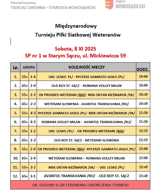 Już 8 listopada Stary Sącz stanie się areną wyjątkowego sportowego wydarzenia. Na hali sportowej Szkoły Podstawowej nr 1 przy ul. Mickiewicza odbędzie się międzynarodowy turniej oldbojów w piłce siatkowej, który będzie nie tylko świętem sportu, ale również okazją do uczczenia 80-lecia siatkówki w Starym Sączu.