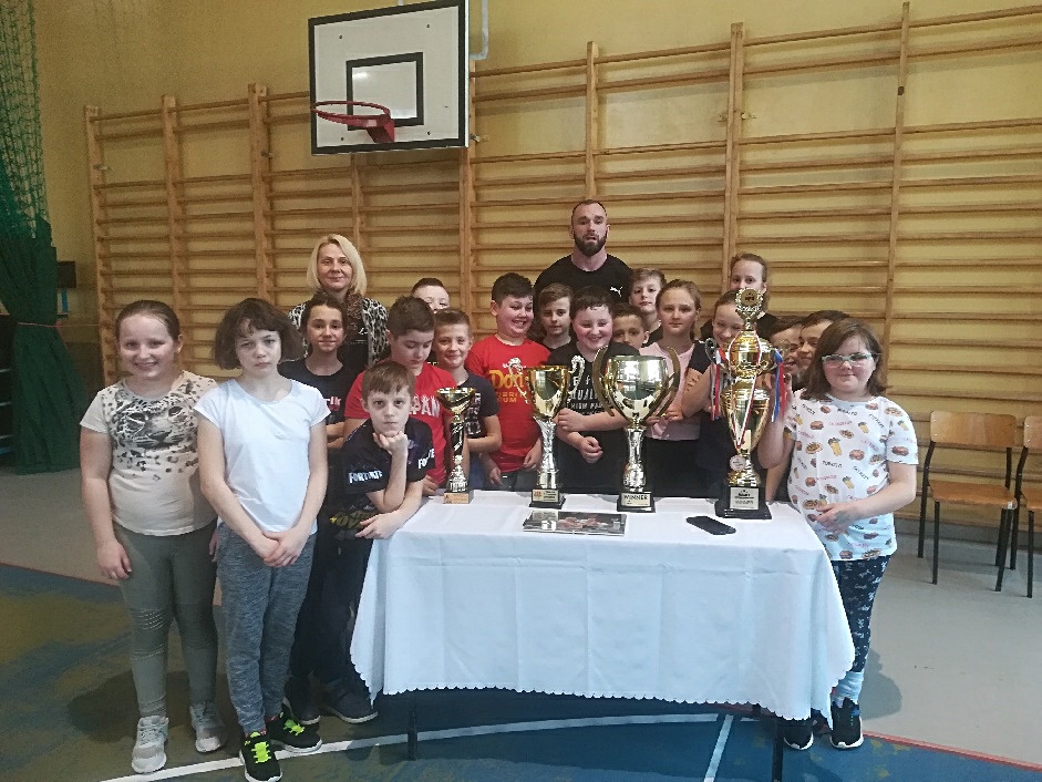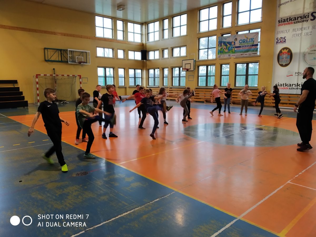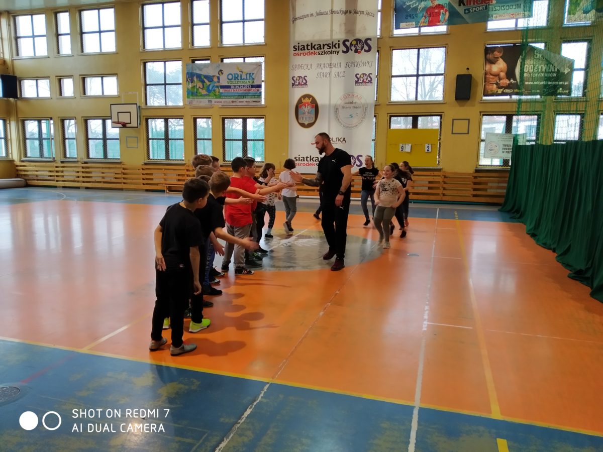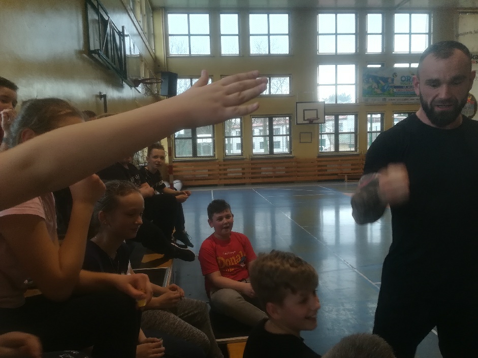 Celem lekcji było zaprezentowanie kickboxingu jako dyscypliny sportowej, zainteresowanie uczniów sztukami walki. Na zakończenie zajęć pan Kamil pogratulował dzieciom dobrej zabawy i rozdał autografy. Była to interesująca lekcja dla dzieci, prócz wysiłku towarzyszyła im duża porcja śmiechu i pozytywnej energii.