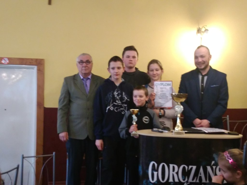 Szkółka Szachowa GOK Łącko: Miłosz Mikołajczyk, Lucjan Basiaga, Damian Basiaga, Klaudia Masiarz. Opiekun: Witold Majerski