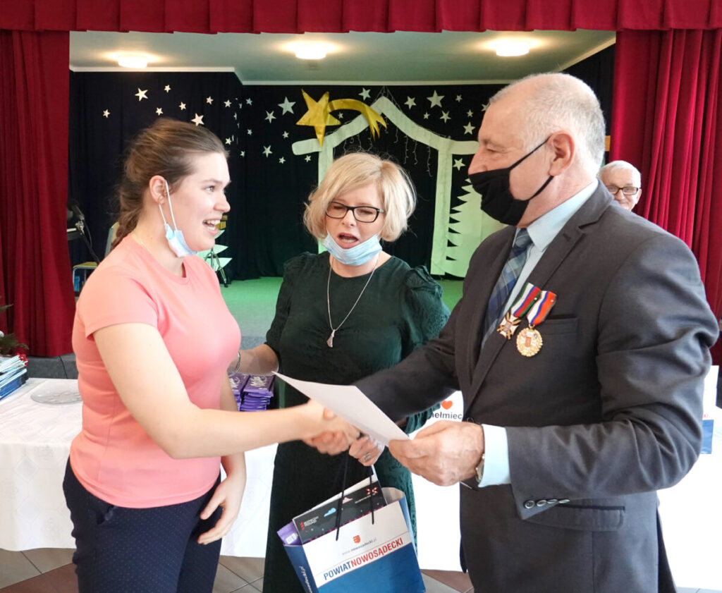 Oprócz nagród dla podopiecznych ośrodka, starosta wręczył też trzy Srebrne Jabłka Sądeckie pracownikom SOSW. Otrzymali je: Elżbieta Kryń, Jolanta Gowgiel i Arkadiusz Kadyczewski.