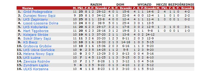 - Sokół Stary Sącz 11 pkt