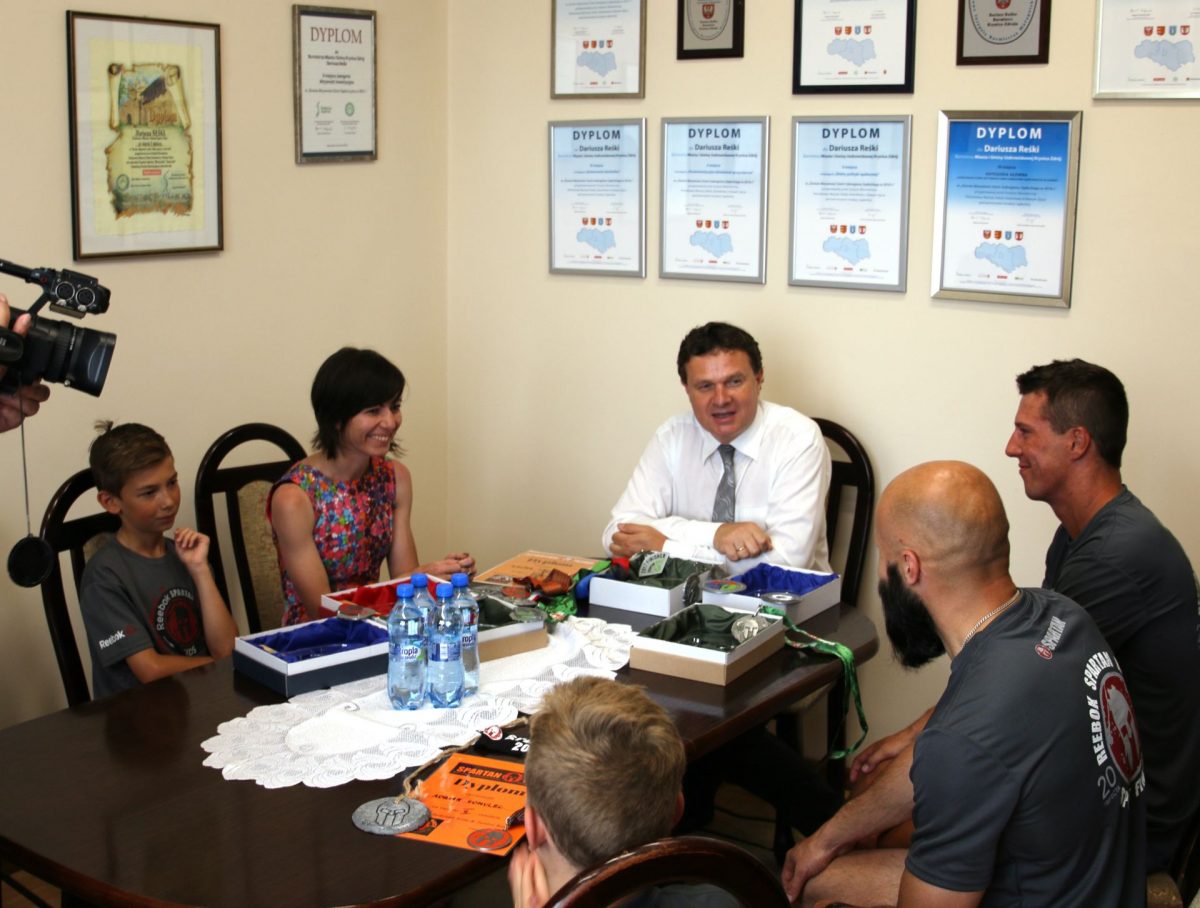 W piątek żona Łukasza oraz Bartek i Arek odebrali z rąk Burmistrza Krynicy-Zdroju pamiątkowe puchary a Adrian i Kacper sportowe gadżety.
