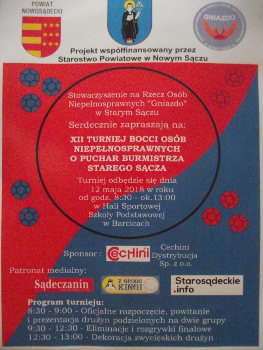 Już w sobotę (12 maja) odbędzie się XII Turniej Bocci Osób Niepełnosprawnych o Puchar Burmistrza Starego Sącza. Gościnne progi Zespołu Szkół w Barcicach staną się areną niezwykłych zmagań 100 niepełnosprawnych sportowców. Serdecznie zapraszamy do wspólnego kibicowania.