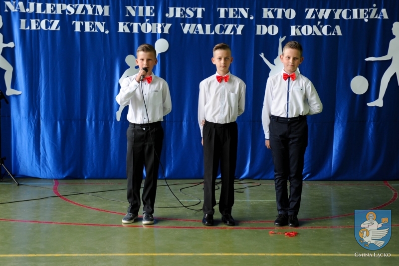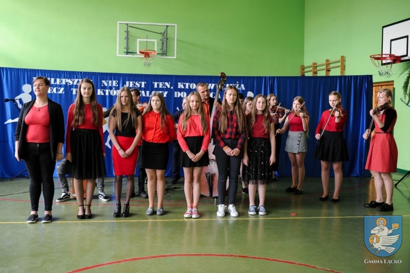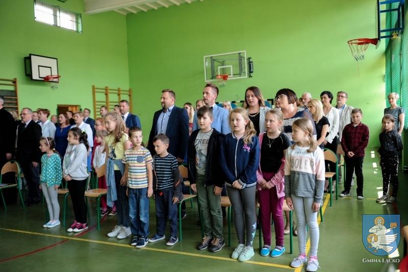 Dyrektor Szkoły powitała zebranych i podziękowała wszystkim, dzięki którym powstał obiekt tak ważny dla uczniów, którzy pod kierunkiem nauczycieli osiągają wysokie wyniki sportowe, reprezentując przy tym łącką szkołę na szczeblu powiatowym i wojewódzkim. Jan Dziedzina – Wójt Gminy, w swoim wystąpieniu wyraził uznanie dla tych, którzy finansowali, przygotowywali, realizowali i koordynowali projekt, a zwłaszcza parlamentarzystom, którzy swą pracą przyczynili się do pozyskania środków na realizację tej inwestycji.