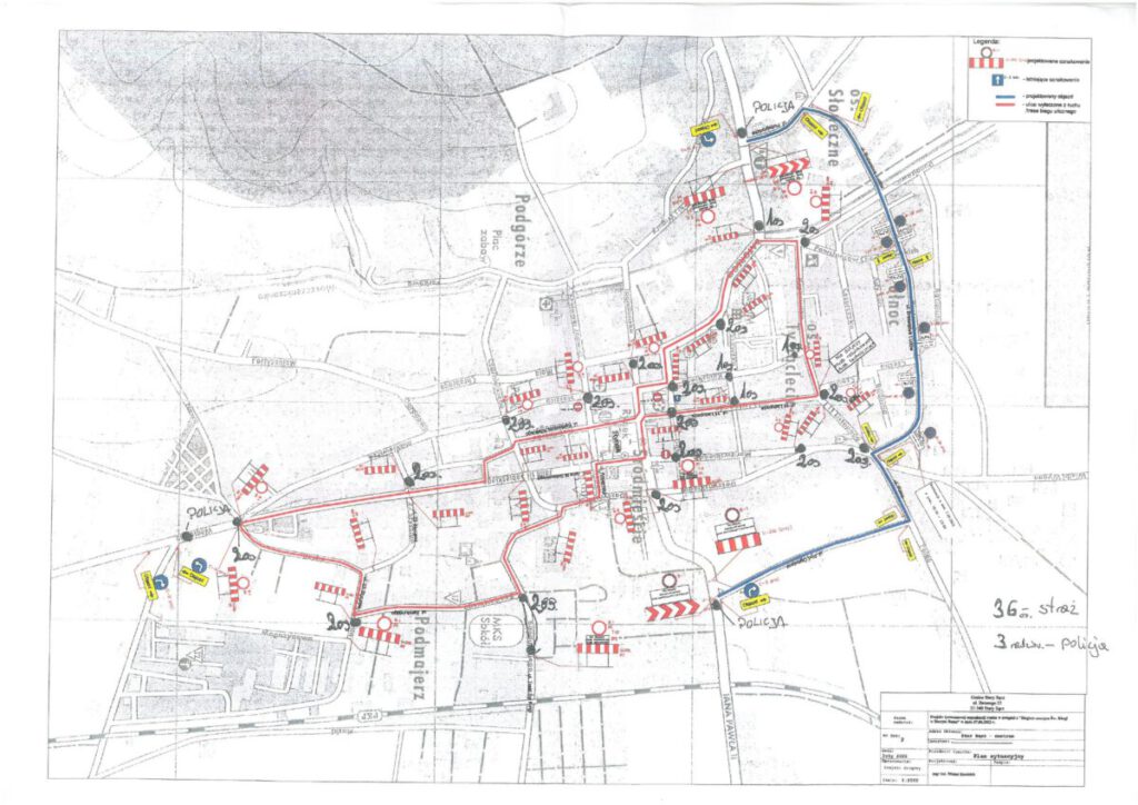 Wprowadzenie zakazu zatrzymywania się pojazdów na wskazanych drogach nastąpi w g. 18:00 – 23:00, zamknięcie ruchu na wskazanych ulicach 20:45 – 22.30.