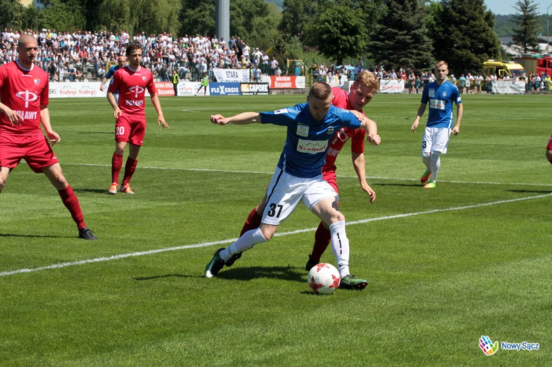 Wynik dla Sandecji nie miał żadnego znaczenia, bowiem nikt już nie odbierze sukcesu zespołowi z Nowego Sącza, na który ciężko zapracował w rundzie wiosennej. Natomiast dla drużyny gości liczyło się tylko zwycięstwo. Stąd od pierwszego gwizdka sędziego na murawie przy Kilińskiego toczyła się zacięta walka o każda piłkę. Ucierpiało na tym widowisko, bowiem sędzie często przerywał mecz. W pierwszej połowie stroną przeważającą była Sandecja. Po strzałach Trochima, Piszczka piłka trafiała w poprzeczkę lub słupek i tak był cztery razy. Rywale też mieli swoje okazje, ale znakomicie w bramce spisywał się Gliwa. Po zmianie stron mecz częściej toczył się na połowie Sandecji, bowiem Wisła za wszelką cenę chciała zdobyć gola. Jednak zabrakło piłkarzom z Puław precyzji i szczęścia. Inna sprawa, że obrona kierowana przed Szufryna spisywała się bez zarzutu. Gola dla biało czarnych próbował zdobyć Trochim, Baran, Szufryn i Piszczek, ale piłka jak zaczarowana nie chciała wpaść do siatki rywali i mecz zakończył się remisem.