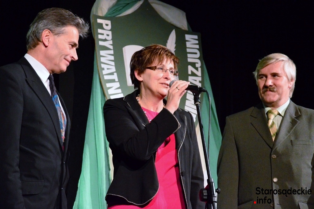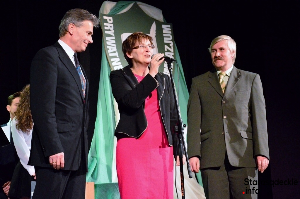 –Gimnazjum w Starym Sączu jest dowodem na to, że nie ma szkół małych, dużych, niepublicznych czy publicznych. Przede wszystkim są szkoły przeciętne i takie, które ponad przeciętność chcą wyrosnąć. I to jest własnie taka szkoła. O czym świadczą jej wyniki –mówił Stanisław Szudek -dyrektor Sądeckiej Delegatury Kuratorium Oświaty w Krakowie– Jestem przekonany, że gdyby więcej było takich gimnazjów jak to, to być może publiczna dyskusja wokół tych szkół byłaby inna. I los gimnazjów nie byłby taki niepewny. Myśląc o przyszłości, szkoła postanowiła poszerzyć zakres swoich działań. Wiem, że powstała prywatna szkoła podstawowa. To jest tak, że od „starszego brata” można otrzymać pewien wzór do naśladowania. Ta szkoła staje przed kolejną szansą. I wierzę, że za 10 lat będziemy świętować jej kolejny jubileusz.