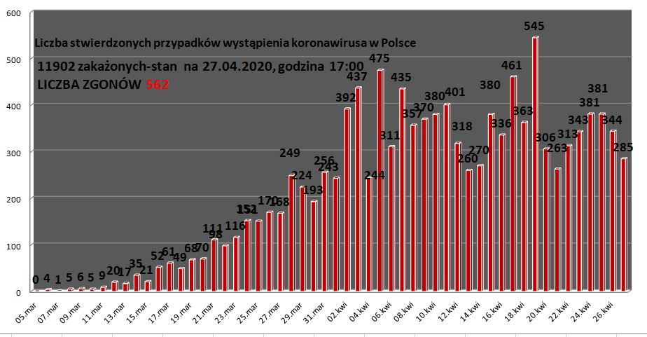 Obecnie w Małopolsce zakażenie koronawirusem zostało potwierdzone u 841 osób.