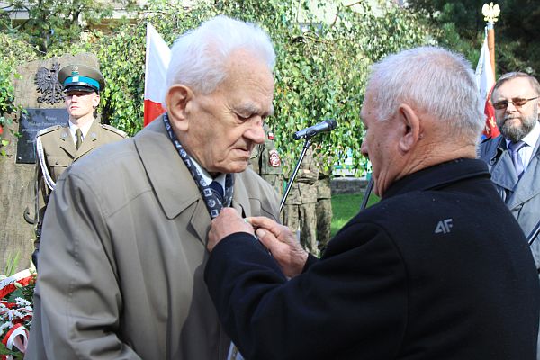 Podczas wczorajszych uroczystości specjalne odznaczenie Kombatancki Krzyż Zasługi otrzymał prezes Koła Miejsko-Powiatowego Związku Kombatantów Rzeczypospolitej Polskiej i Byłych Więźniów Politycznych Leopold Cisowski, który podziękował prezydentowi Ryszardowi Nowakowi za obelisk, który przypomina społeczeństwu żyjącemu w wolnej Polsce, o tych co tej wolności bronili i o nią walczyli w latach 1939- 1945 i później, przy którym co roku obchodzone są uroczystości rocznicowe.