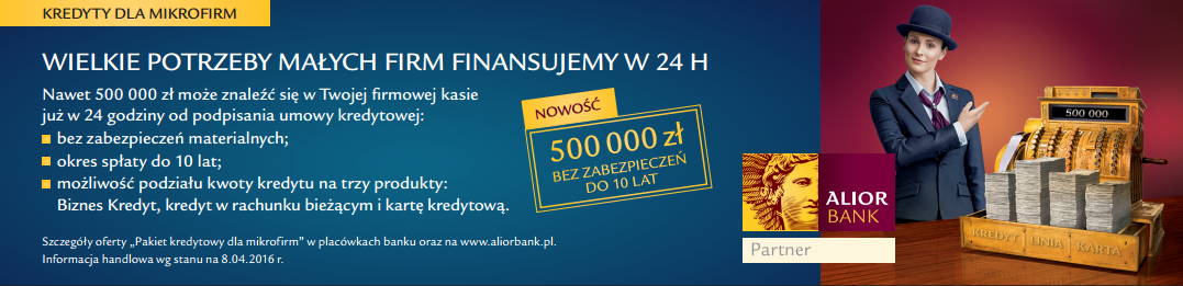 – Oferta Alior Banku łączy najlepsze cechy pożyczek dla małych firm dostępnych obecnie na rynku – teraz kredyt nawet do 500 tys. zł jest dostępny szybko i w wygodny dla klienta sposób.
