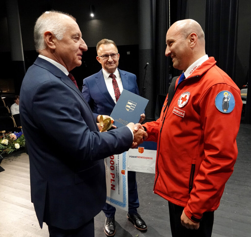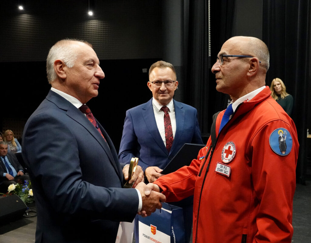 Podczas dzisiejszej gali „Sądeckie Oblicza Wolontariatu” starosta nowosądecki Marek Kwiatkowski nagrodził prezesa Rejonowego Oddziału PCK w Starym Sączu Andrzeja Lisa oraz wiceprezesa Małopolskiego Oddziału Okręgowego PCK Dariusza Cieślę specjalną nagrodą wolontariatu.