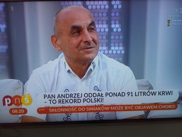 Andrzej Lis, krwiodawca ze Starego Sącza gościł dzisiaj (22 czerwca) w „Pytaniu na Śniadanie” TVP2 gdzie opowiadał przede wszystkim o krwiodawstwie. Oddał łącznie 91 litrów krwi i jest rekordzistą Polski. Na antenie wspominał też o swoim rodzinnym mieście. -Pamiętasz swój pierwszy raz? -pytał Łukasz Nowicki –Oczywiście. To było 17 sierpnia 1974 roku. Wtedy doszło do … Czytaj dalej Andrzej Lis w Pytaniu na Śniadanie opowiedział o krwiodawstwie i….Starym Sączu!
