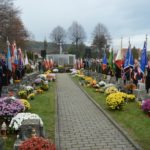 Pod obeliskami na nowym cmentarzu wieńce i wiązanki kwiatów złożyli: