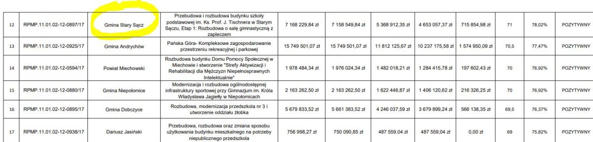 Stary Sącz doczeka się pełnowymiarowej hali sportowej. Projekt pt. „Przebudowa i rozbudowa budynku Szkoły Podstawowej im. Ks. Prof. J. Tischnera w Starym Sączu, Etap 1: Rozbudowa o salę gimnastyczną z zapleczem” znalazł się na 12 pozycji listy rankingowej Europejskiego Funduszu Rozwoju Regionalnego i otrzyma dofinansowanie w wysokości 5 368 912,35 zł . Całkowity koszt przedsięwzięcia szacuje się na 7 168 229,84 zł.