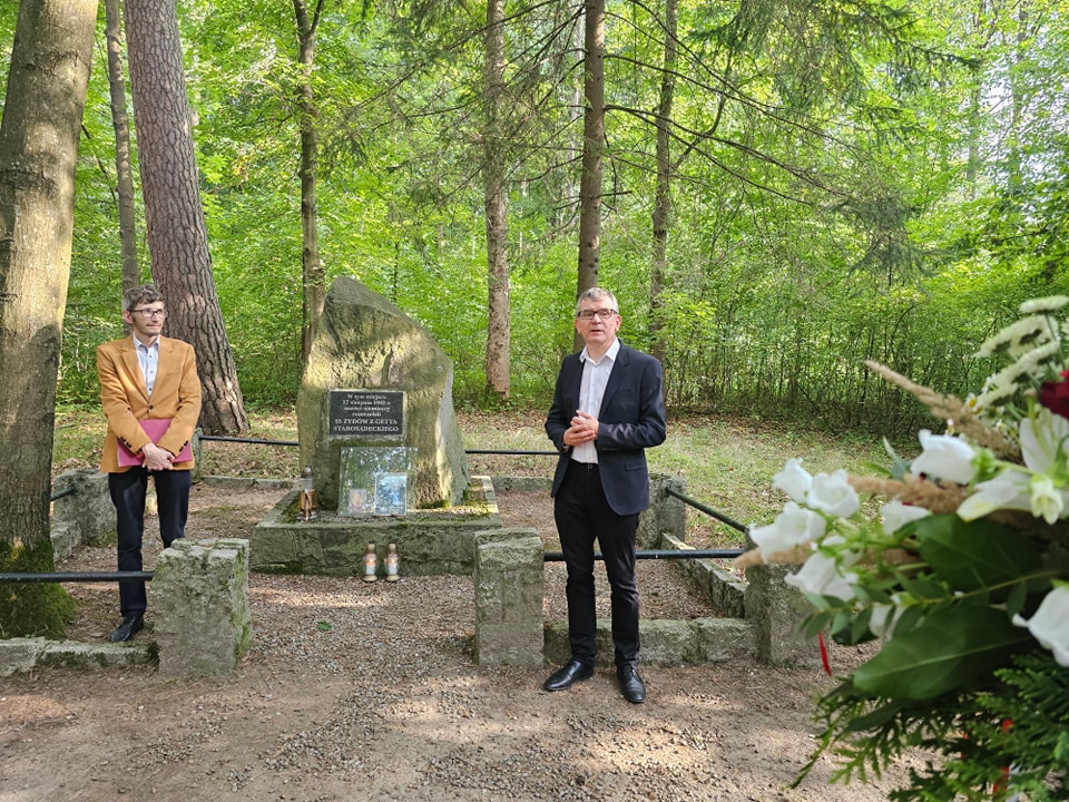 Dzisiaj (17.08.2024) w 82. rocznicę tragicznych wydarzeń spotkaliśmy się ponownie. Dokładnie 17 sierpnia 1942 r. Niemcy rozpoczęli likwidację getta w Starym Sączu. Wówczas ludność żydowską wysiedlono do getta w Nowym Sączu, następnie w bydlęcych wagonach wysłano do Bełżca. Tam Niemcy przygotowali im śmierć w komorach gazowych. W ten sposób zginęło 10% mieszkańców miasta. Tego samego dnia – 17 sierpnia 1942 r. – najsłabszych mieszkańców żydowskiej dzielnicy zabito bestialsko na Piaskach, nad Popradem.