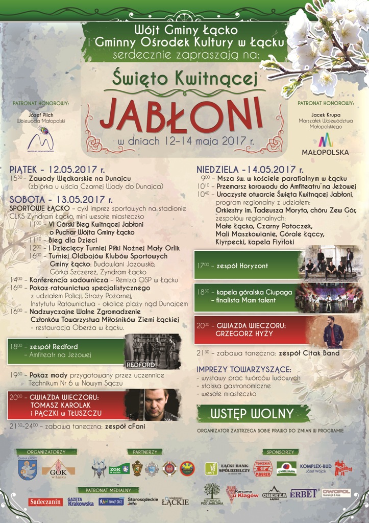 VI Bieg Górski Kwitnącej Jabłoni, konferencja sadownicza i wieczorny koncert zespołu LOKA i Redford to tylko niektóre atrakcje sobotniego Kwitnięcia Jabłoni. Główne uroczystości i przemarsz korowodu do Amfiteatru na Jeżowej zaplanowano na niedzielę 14 maja.