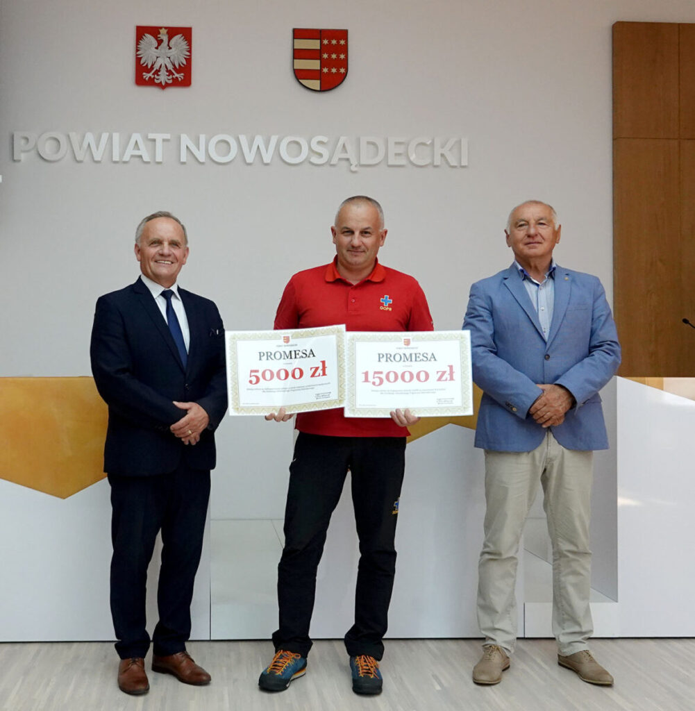 – Kwota, którą przeznaczamy dla strażaków ochotników i służb odpowiadających za bezpieczeństwo w naszym regionie jest z roku na rok coraz wyższa – mówi starosta nowosądecki Marek Kwiatkowski. – Obecnie zbliżyła się do 300 tysięcy złotych, w tym dla WOPR, GOPR oraz Instytutu Ratownictwa na wodach górskich przekazaliśmy 64 tysiące złotych. Za te środki strażacy będą mogli kupić sprzęt i umundurowanie. Chcemy, aby służby odpowiadające za bezpieczeństwo mieszkańców i turystów były odpowiednio wyszkolone i dysponowały nowoczesnym sprzętem. Jednocześnie pragnę podziękować druhom z OSP i wszystkim służbom za pracę i niesienie pomocy. Wasza praca i zaangażowanie są nie do przecenienia.