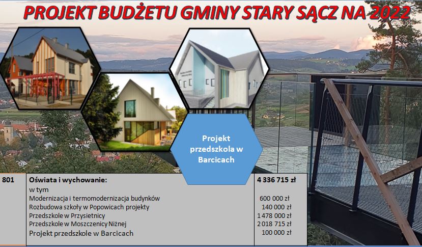 Kolejne 4 mln w budżecie gmina zainwestuje w budynki oświatowe, a dokładniej przedszkola w Przysietnicy, Moszczenicy Niżnej i projekt przedszkola w Barcicach.