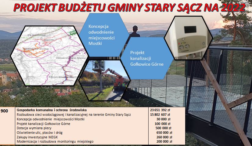 Najwyższym wydatkiem inwestycyjnym jest budowa wodociągów i kanalizacji w Gminie Stary Sącz, a dokładniej w Gołkowicach Dolnych, Moszczenicy Wyżnej i Mostkach. To zadanie pochłonie 23 mln złotych.