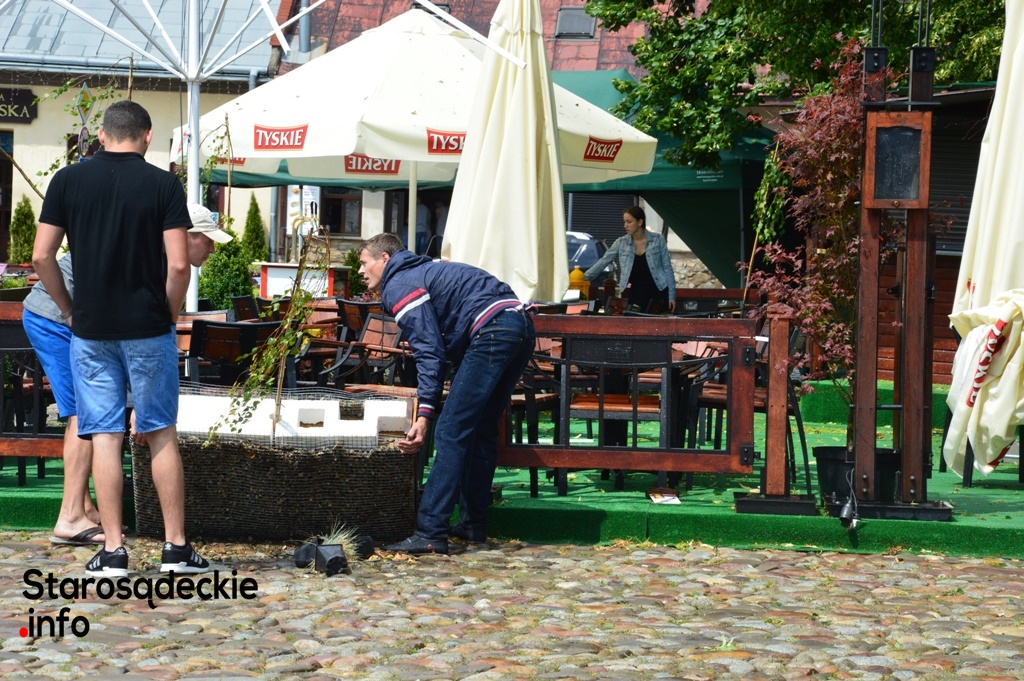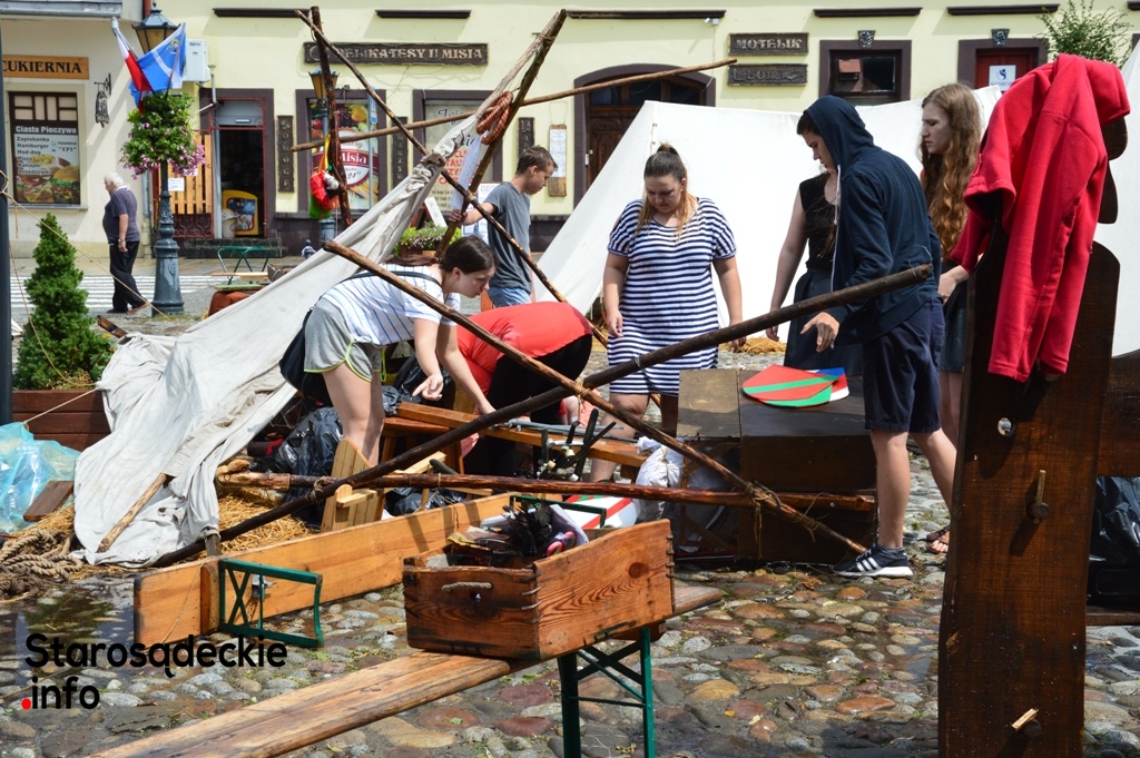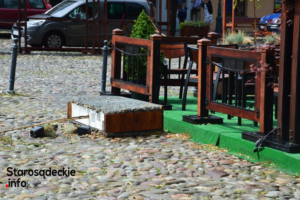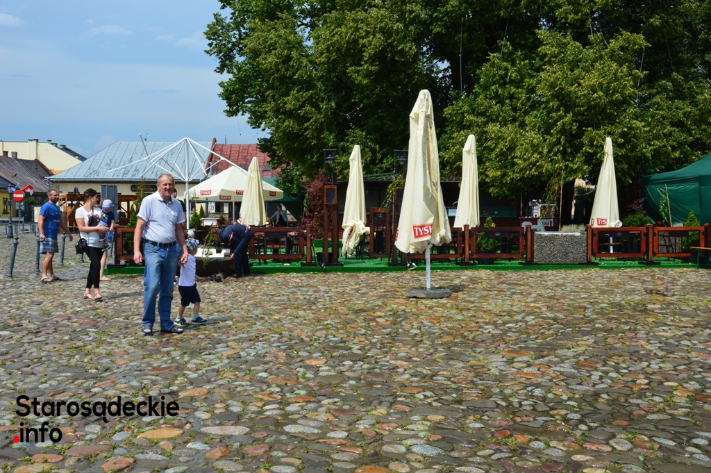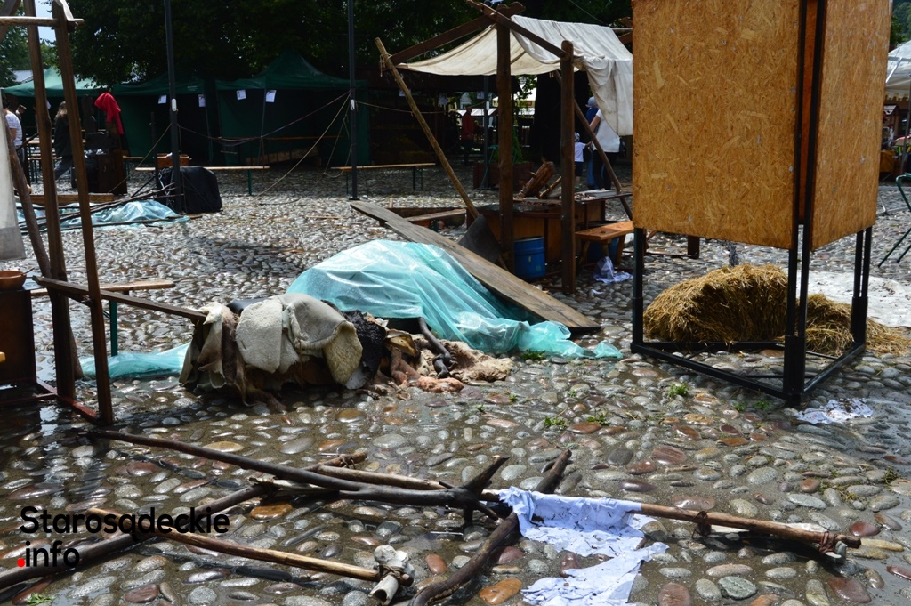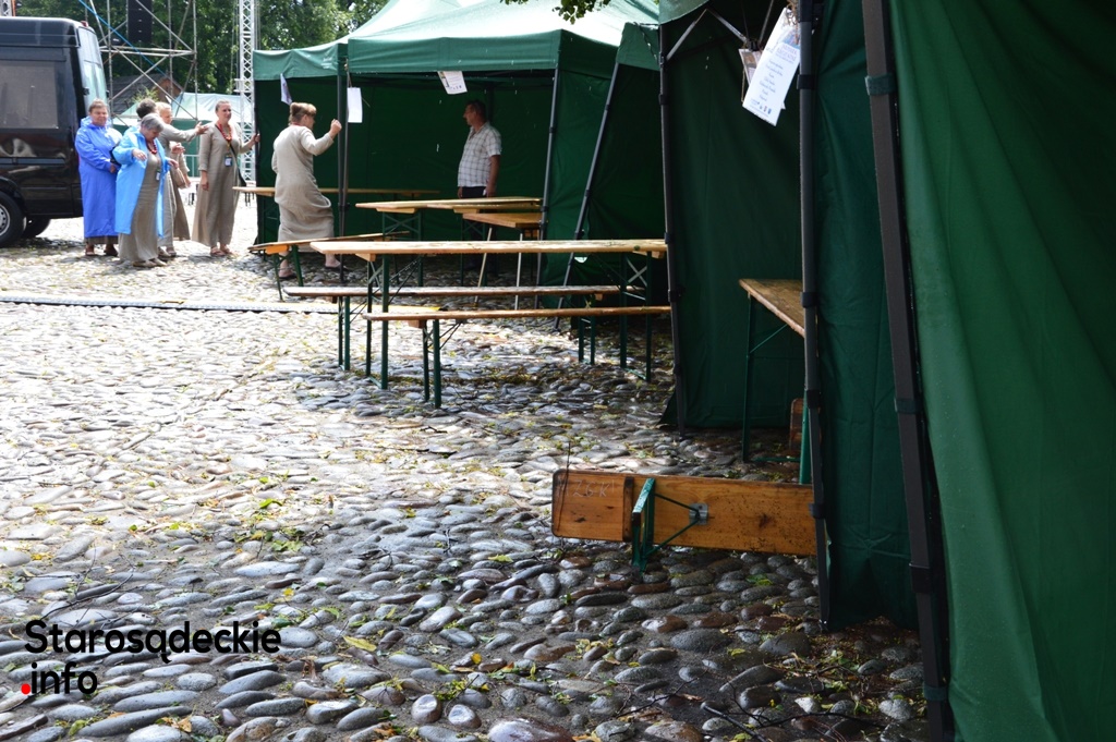 Wystarczył kwadrans ulewy, żeby ulice w Starym Sączu zamieniły się w koryta rzeczne a wiatr porywał i łamał namioty rozłożone podczas Jarmarku św. Kingi. Pogoda nie oszczędziła także gospodarstw domowych. Spływająca ulicami woda podtopiła kilka domów.