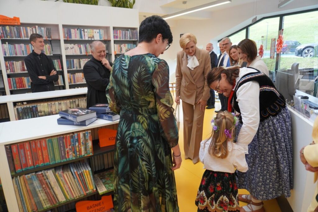 Filia biblioteki w Przysietnicy to miejsce tętniące życiem – nowoczesna przestrzeń, która przyciąga mieszkańców nie tylko książkami, ale również bogatą ofertą kulturalno-edukacyjną. Spotkanie z parą prezydencką było dla tej instytucji nie tylko ogromnym wyróżnieniem, ale również okazją do pokazania, jak ważną rolę pełni biblioteka w codziennym życiu społeczności.