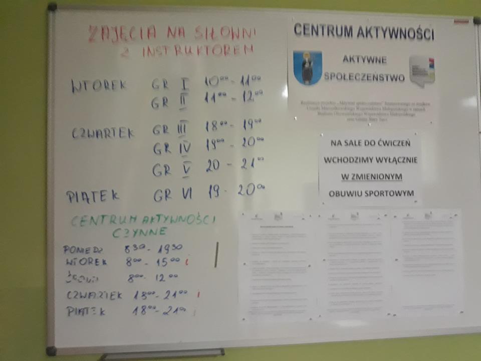 • Trwają zapisy na bezpłatne zajęcia na siłownie z instruktorem – ilość miejsc ograniczona – decyduje kolejność zgłoszeń