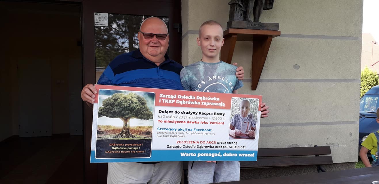 Mamy już pierwszych członków -94 osoby, które należą do Drużyny Kacpra Basty. Lista osób rośnie z dnia na dzień. Co to za drużyna? Poszukiwane są osoby, które co miesiąc zadeklarują wpłatę 20 złotych na leczenie nastolatka walczącego z nowotworem. Towarzystwo Krzewienia Kultury Dąbrówka z Nowego Sącza tworzy „Drużynę Kacpra Basty”. 15-letni chłopak od dwóch lat choruje na raka kości. W ubiegłym roku pojawiły się także przerzuty na płuca. Nastolatkowi pomóc może lek, który kosztuje ponad 12 tysięcy złotych i nie jest refundowany.