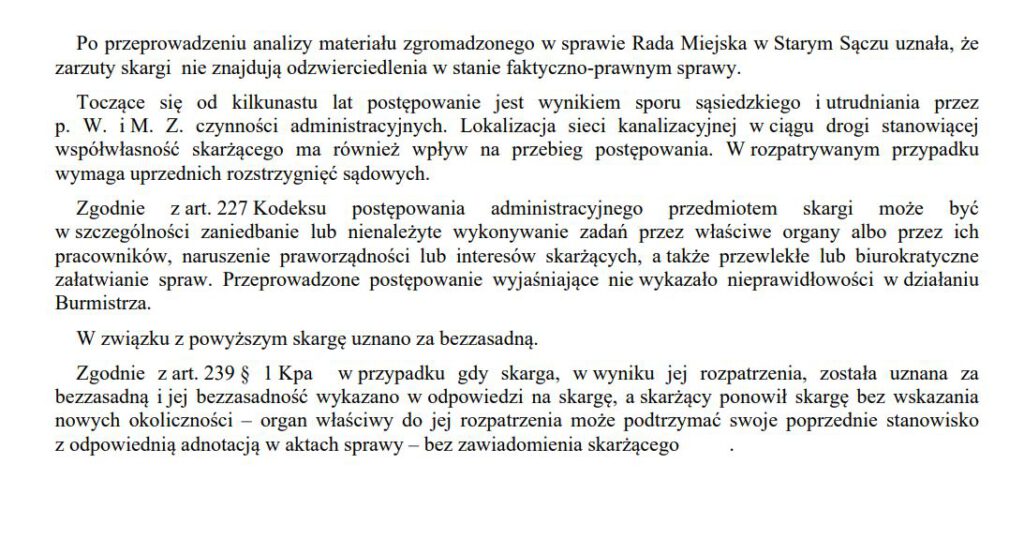 Do Urzędu Miejskiego w Starym Sączu wpłynęły dwie skargi na nienależyte wykonywanie obowiązków służbowych. Jak czytamy w projektach uchwał, obie mają zostać uznane za…..bezzasadne.