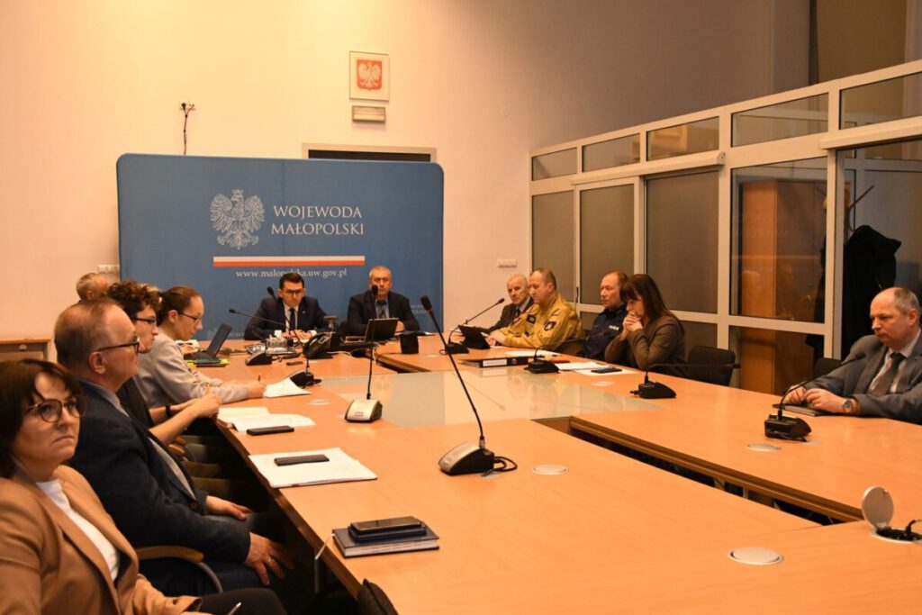 W związku z tak poważną oceną sytuacji meteorologicznej i potencjalnych zagrożeń z nią związanych oraz dużą liczbą turystów spędzających w Małopolsce ferie zimowe wojewoda małopolski Łukasz Kmita zwołał dziś posiedzenie Wojewódzkiego Zespołu Zarządzania Kryzysowego. W spotkaniu uczestniczyli przedstawiciele małopolskich służb, inspekcji, straży oraz instytucji, odpowiedzialnych za działania związane ze skutkami dynamiki pogodowej, w tym m.in. Państwowej Straży Pożarnej, Policji, Inspekcji Nadzoru Budowlanego, zarządców dróg, PKP, Tauron Dystrybucja, TOPR, GOPR, Lasów Państwowych, IMGW oraz powiatu tatrzańskiego.