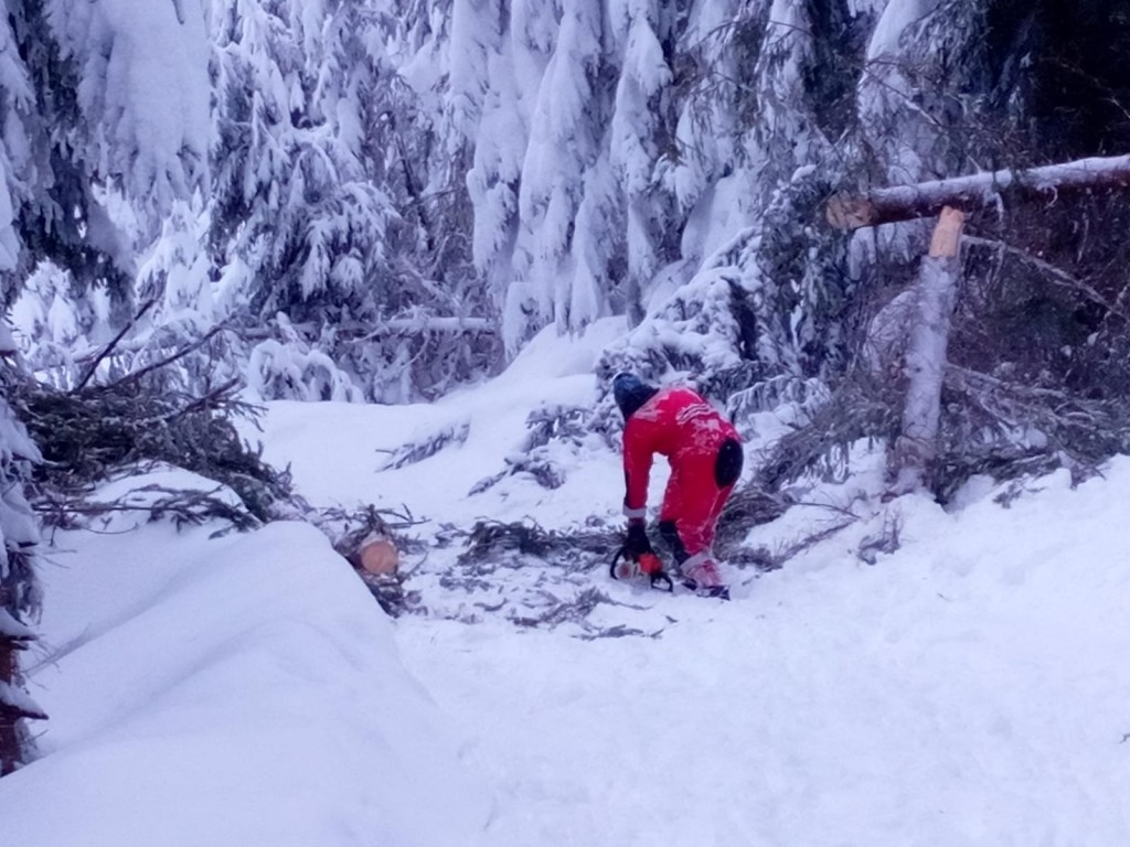 „Po nocnych obfitych opadach mokrego śniegu, kilka drzew wzdłuż drogi prowadzącej z Gabonia na Przehybę połamało się uszkadzając linię energetyczną i telefoniczną. W związku z pogarszającymi się warunkami w górach, obfite opady śniegu, nieprzetarte szlaki i licznie połamane drzewa podjęto decyzję o ewakuacji. Dojazd do schroniska zatarasowany był powalonymi drzewami” – czytamy w komunikacie krynickiej grupy GOPR.