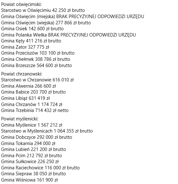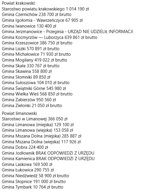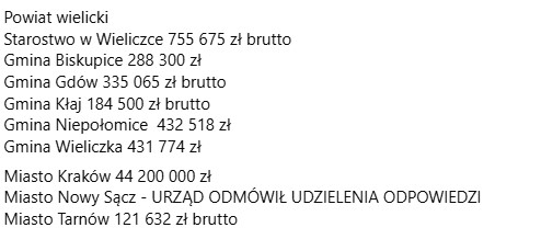 - Starostwo powiatu krakowskiego – 1 014 190 zł