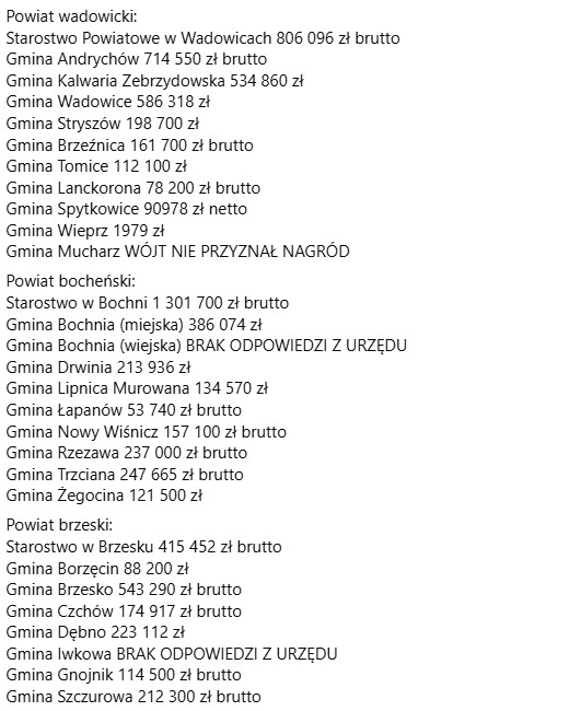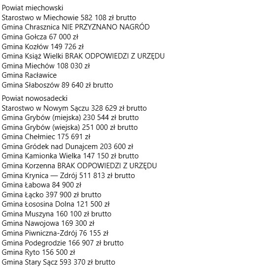 Czyli — mówiąc wprost — w wielu miejscach nagrody przekraczały roczne budżety niejednej małej inwestycji lokalnej.