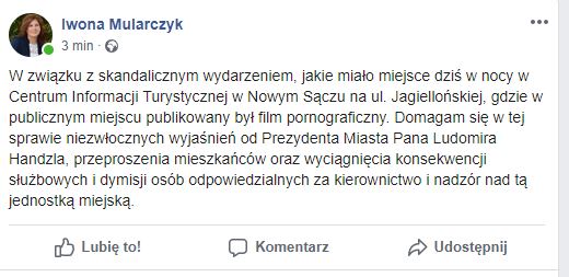 Sądeczanie, którzy wczorajszą nocą przechadzali się po ulicy Jagiellońskiej w Nowym Sączu z niedowierzaniem przyglądali się witrynie przy Centrum Informacji Turystycznej. Na interaktywnym monitorze, tak hucznie otwieranym kilka dni wcześniej, wyświetlał się film pornograficzny. Jak długo był włączony, trudno powiedzieć.