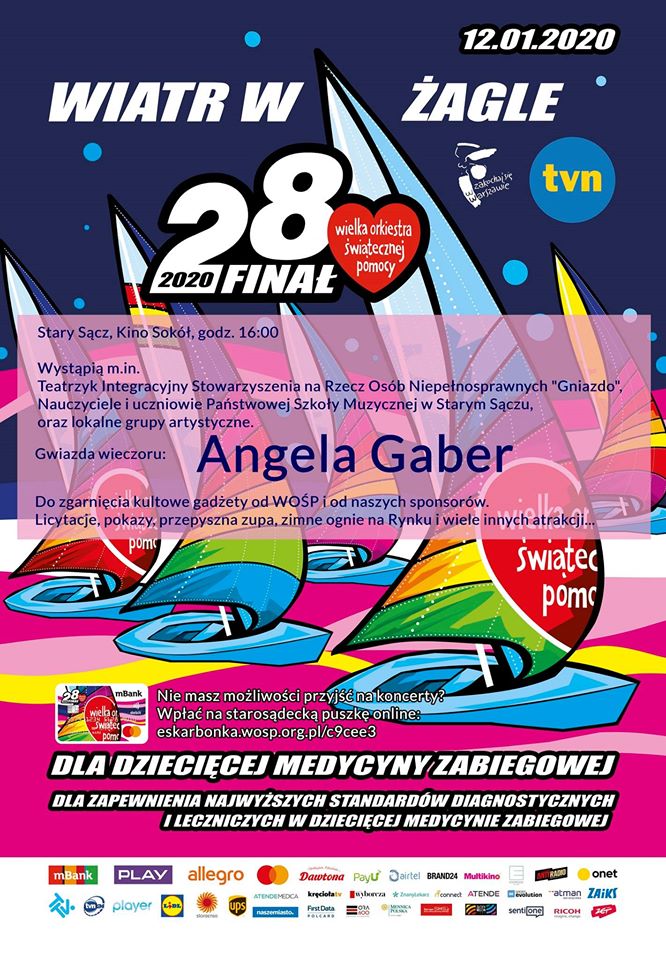 Finał WOŚP w Starym Sączu już dzisiaj (12.01.2019). Centralnym punktem zabawy i zbiórki jest Kino Sokół. To tam czekają na Was występy licytacje. Do włączenia się w akcję Agnieszka Dygant, Daria Widawska i Filip Lato. Tegoroczny finał odbywa się pod hasłem „Wiatr w żagle. Dla zapewnienia najwyższych standardów diagnostycznych i leczniczych w dziecięcej medycynie zabiegowej”.