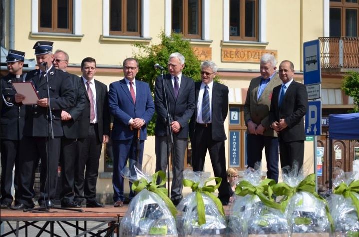 Później Prezesi poszczególnych jednostek odebrali nagrody ufundowane przez burmistrza Jacka Lelka. Głos zabierali przybyli goście oraz Burmistrz Starego Sącza. Uroczystość zakończyła defilada pododdziałów, którą tworzyły jednostki OSP wraz z pocztami sztandarowymi.