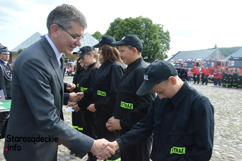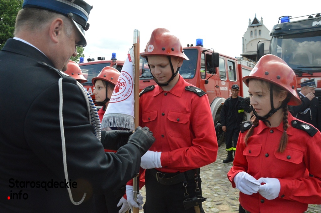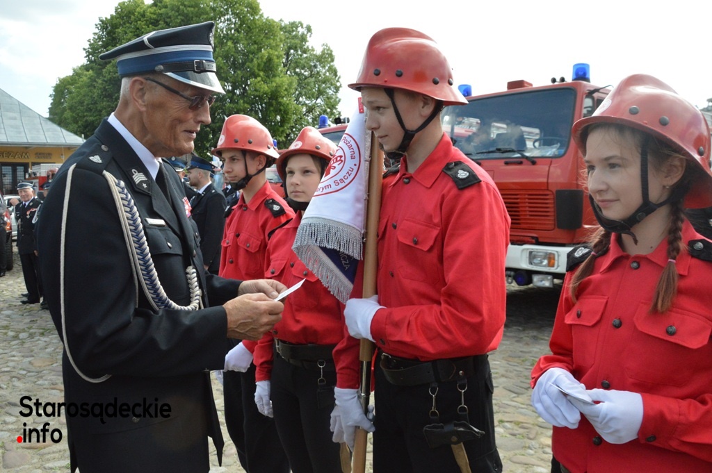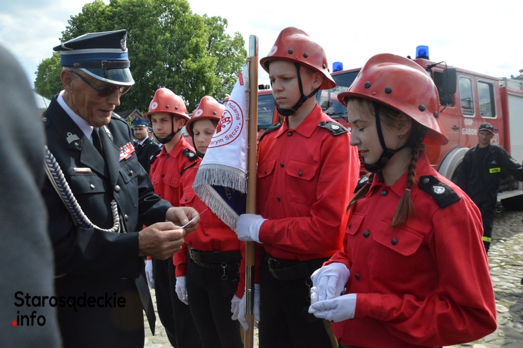– Starajcie się, by strażacki ślad na polskich drogach ocalić od zapomnienia – mówił wzruszony syn patrona starosądeckiej młodzieżówki. Proporzec poświęcono, a Paweł Motyka przekazał go młodym druhom. Tego zaszczytu dostąpił dowódca Młodzieżowej Drużyny Pożarniczej Dawid Bober, od którego proporzec przejął poczet utworzony przez Monikę Oracz, Arkadiusza Wysoczańskiego i Aleksandrę Koronę.